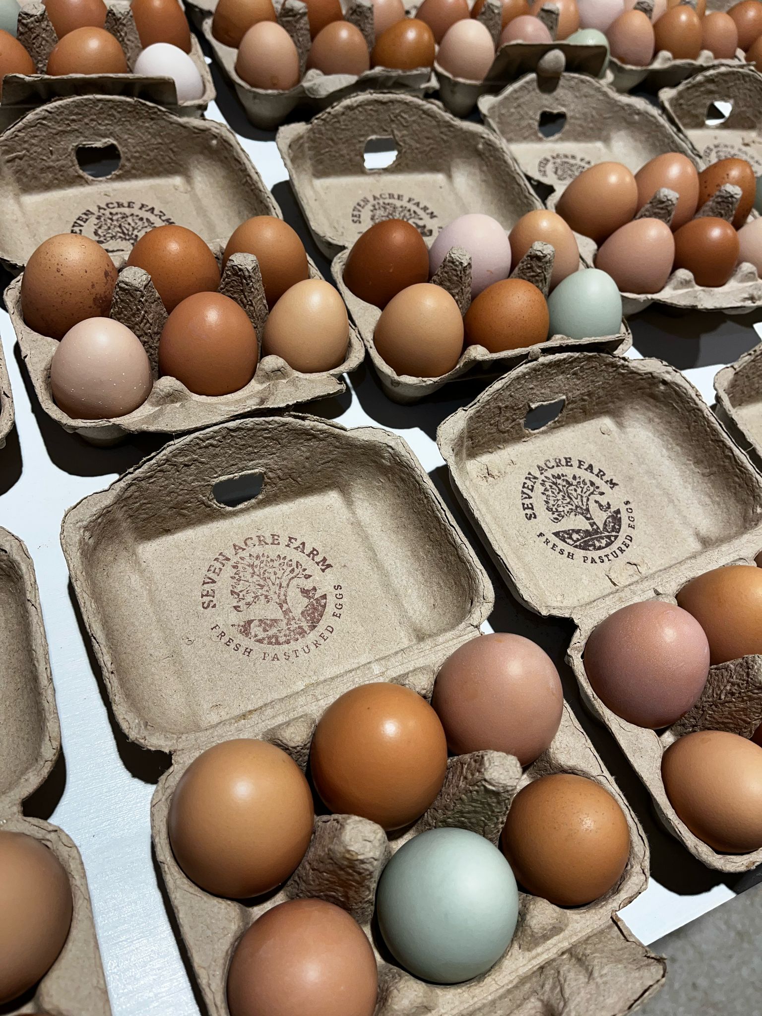 We produce the finest pastured hen eggs, as well as a range of fruit and nut trees, heritage lamb and hogget meat, herbs and small batches of fruit and veg. We deliver on a weekly round covering the below areas and we are open by appointment also.
